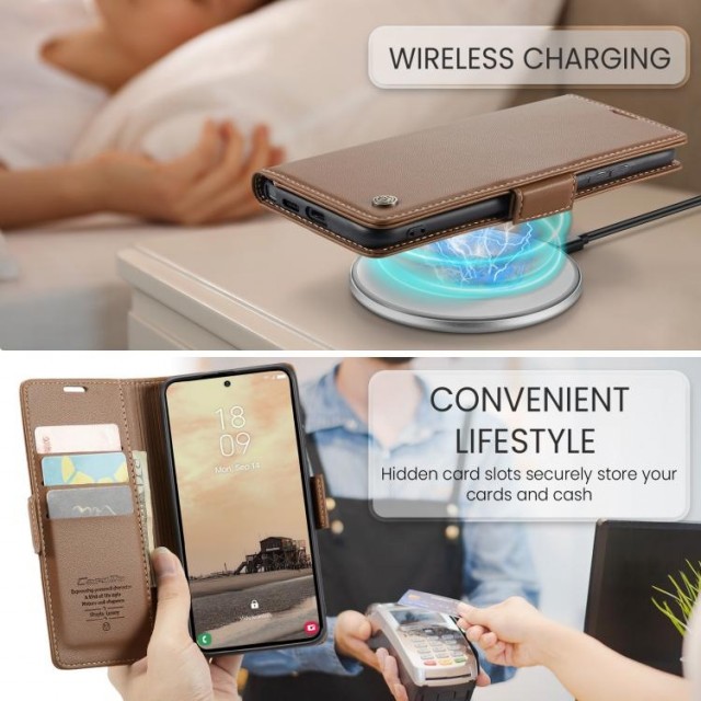 CaseMe Lommebok deksel for Samsung Galaxy S26 Ultra 5G brun CaseMe Lommebok deksel for Samsung Galaxy S26 Ultra 5G brun Lommebok-deksel med stativ holder funksjon, plass til kredittkort og Innebygd RFID-beskyttelse PrisNOK179,00 inkl. mva. På lager Antall Kjøp Ønskeliste Artikkelnr.: S-1004126 Produsent: CaseMe Del dette Produktinfo Produktanmeldelser (0) Slankt, stilren og praktisk lommebok-deksel av høy kvalitet fra CaseMe , med Innebygd RFID-beskyttelse, beskytter personlig informasjon mot uautorisert skanning. Lommeboken på innsiden har plass til kortene dine, og det finnes også en lomme for sedler eller kvitteringer. Egenskaper: - Et elegant og stilig deksel - Magnetisk lukkemekanisme- Innebygd RFID-beskyttelse - Lommer til kort og sedler på innsiden av deksel - Innebygd mykt deksel som beskytter din mobil - Enkel tilgang til alle funksjoner og porter - Materiale: PU-lær med et indre plastdeksel Skriv en produktanmeldelse og del dine erfaringer med dette produktet med andre kunder. Email Navn Din vurdering? 1 star 2 star 3 star 4 star 5 star 6 star Oppgi en tittel for anmeldelsen din Skriv inn produktanmeldelsen i feltet under